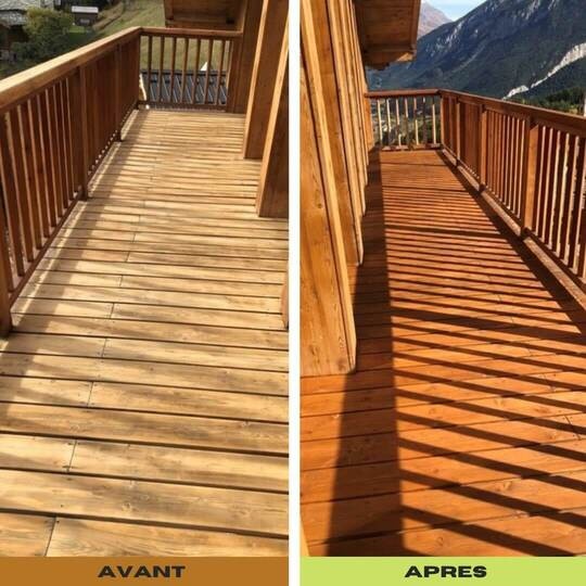 saturateur et huile incolore - bardage bois exterieur- rénovation - avant après